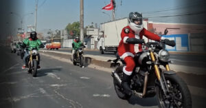 Una moto, un traje rojo y muchas sonrisas bastaron para transformar los fines de semana de diciembre en distintos barrios de la capital. Durante los