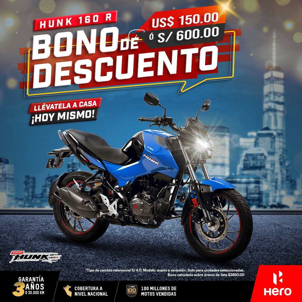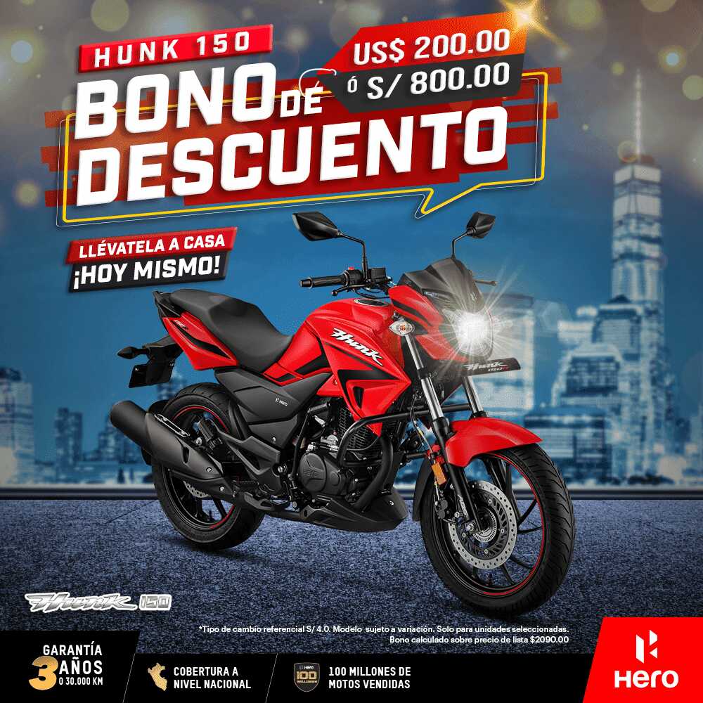 Es importante resaltar que Hero es la única marca de motos en nuestro país en ofrecer una garantía de 3 años o 30 mil kilómetros para toda su línea de motos. Cuenta además con una red comercial de más de 150 puntos entre tiendas propias y concesionarios, y una red de servicios técnicos de más de 175 puntos a nivel nacional, así como un stock de repuestos valorizados en más de 1.5 millones de soles a nivel nacional.