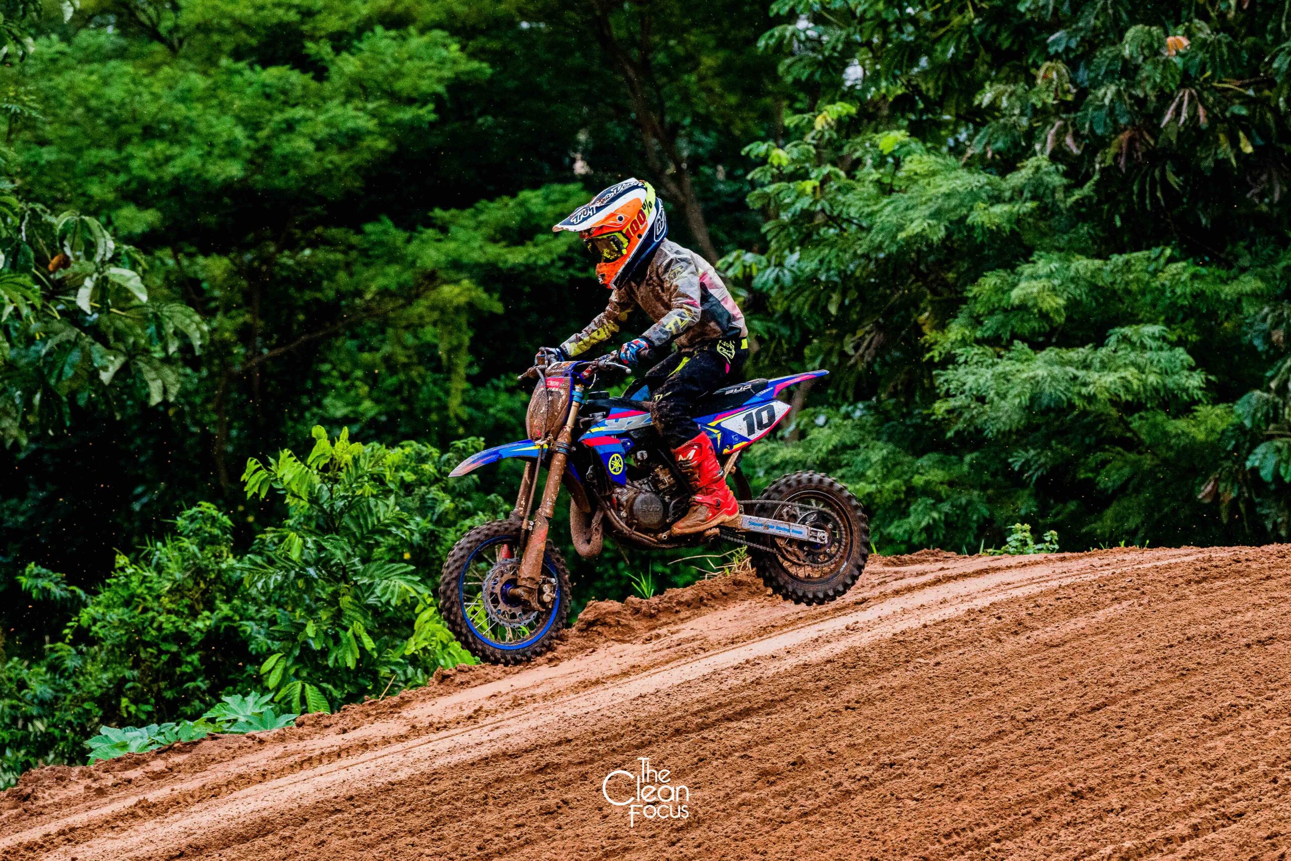 No obstante, un día antes de la competencia, la temperatura bajó de 30 a 5 grados centígrados e inició la lluvia. Para el día siguiente, la lluvia se tornó mucho más intensa, pese a ello, según cuenta Dennis, la FIMLA decidió continuar con el evento. “Fue una nueva experiencia, ya que nunca ha corrido en barro y la moto se le iba para todos lados, a diferencia de los niños de Brasil y Costa Rica que tienen mucha experiencia en este tipo de terreno. En Lima no llueve y es muy difícil aprender en un día el cambio de arena a barro”, relata. En la primera manga, el pequeño ocupó el 4º lugar con 5 caídas y en la segunda, más acostumbrado al barro, salió a pelear la punta. Lamentablemente, tuvo una aparatosa caída, lo cual lo dejó al final de la carrera, pese a ello, logró remontar y llegar al 5º lugar. “Felices de haber llegado al Top 5, corriendo en un ambiente diferente al nuestro”, asegura su padre.